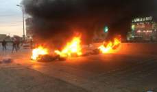 محتجون قطعوا السير على جادة شارل الحلو بالاتجاهين بالاطارات المشتعلة