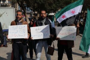 تظاهر العشرات من المواطنين السوريين يوم السبت 25 يناير الجاري، في شوارع وسط العاصمة دمشق احتجاجا على الإحتلال الإسرائيلي للأراضي السورية، وسط حالة من الحنق الشعبي الواسع على استمرار التواجد الإسرائيلي في الأراضي السورية.