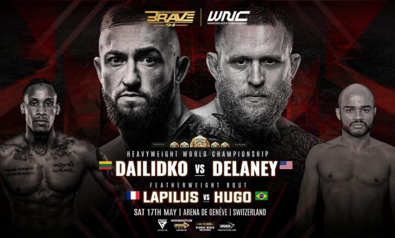 وتشهد بطولة BRAVE CF 94 إقامة حدث رئيسي على اللقب العالمي في الوزن الثقيل، والذي يجمع بين البطل الحالي بافيل دايليدكو صاحب السجل المميز بـ9 انتصارات وتعادلين، والمقاتل الليتواني أودي ديلاني الذي يمتلك في رصيده 5 انتصارات نظيفة.