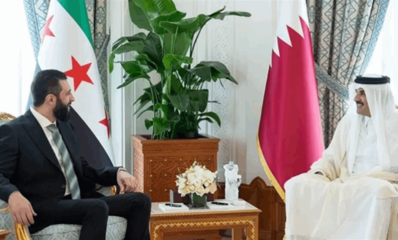 بحث أمير قطر الشيخ تميم بن حمد آل ثاني، والرئيس السوري أحمد الشرع، في الديوان الأميري، اليوم الثلاثاء، العلاقات الثنائية وسبل دعمها وتطويرها خاصة في المجالين السياسي والدبلوماسي.