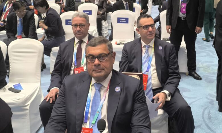رئس الوفد المصرى السفير أبو بكر حفنى محمود نائب وزير الخارجية بمشاركة علاء البيلى وزير مفوض تجارى لشئون الترويج للاستثمار بوزارة الاستثمار والتجارة الخارجية والسفير خالد نظمى سفير مصر لدى الصين ، بحضور الكاتب الصحفى أيمن عامر وكيل الشئون الأفريقية والعربية بنقابة الصحفيين المصرية .