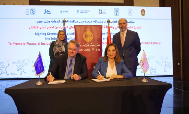 بنك مصر يوقع بروتوكول تعاون مع منظمة العمل الدولية لتعزيز الشمول المالي والقضاء على عمل الأطفال