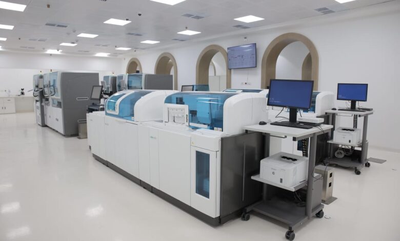 يغطي نظام التشغيل الآلي المتطور للمعمل نطاقًا واسعًا من الاختبارات الطبية المعملية، بما في ذلك الكيمياء الإكلينيكية، واختبارات المناعة، وتخثّر الدم، وتحاليل البول، وأمراض الدم. ويقوم المعمل بتنفيذ كافة الاختبارات الطبية بشكل آلي بالكامل، بما في ذلك نقل العينات وتنفيذ مراحل ما قبل وما بعد التحاليل، وبالنظر للدورة الكاملة لكل اختبار، ندرك أن المعمل الرئيسي المطور يقلل بشكل كبير معدلات الأخطاء البشرية، لا سيما في مراحل ما قبل التحليل، والتي تشهد وقوع أكثر من 60% من الأخطاء المعملية المعتادة.