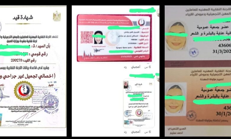 وفي هذا الإطار، صرحت الدكتورة أمل فكري، الطبيبة بالمستشفى السعودي الألماني بالمملكة العربية السعودية، أن انتشار كيانات وهمية تحمل أسماء طبية وصحية مثل “لجان العاملين بالمهن التجميلية” و”العاملين بالخدمات الصحية والطبية” بات يشكل خطرا كبيرا على سمعة الطبيب المصري بالخليج، بعد أن بدأت هذه الكيانات في إصدار شهادات مزاولة المهنة دون أي اعتماد رسمي أو ترخيص قانوني.