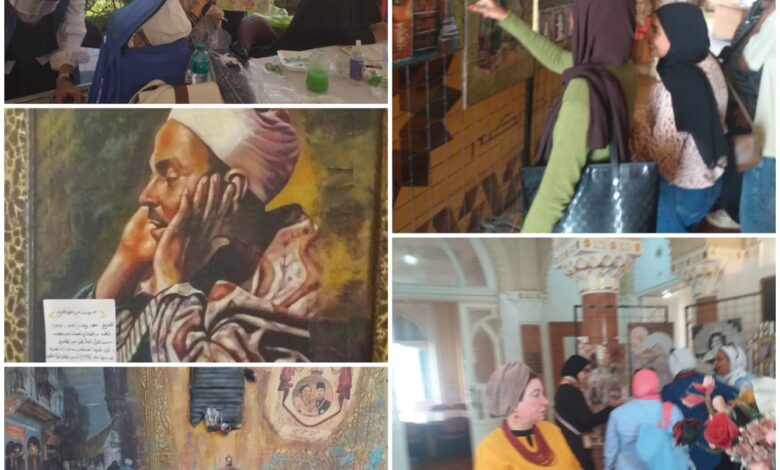 ضم المعرض أكثر من أربعين لوحة فنية متنوعة من عبق التاريخ، إلى جانب مجموعة من الأعمال اليدوية مثل “لمبة الجاز” و”الباجور”. كما احتوى على لوحة للشيخ محمد رفعت الذي افتتحت بصوته الإذاعة المصرية عام 1934 بأمر من الملك فؤاد الأول، حيث نال تقدير الملوك وعامة الشعب بصوته الخاشع الذي جمع بين الإحساس والإتقان، ليصبح رمزًا خالدًا لفن التلاوة المصرية.