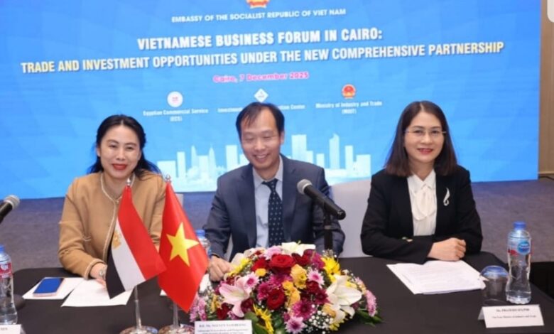 من جانبه تحدث الوزير مفوض علاء البيلي عن الفرص الاستثمارية الواعدة في العاصمة الإدارية الجديدة مشيرا إلى وجود مجالات واسعة للشركات الفيتنامية والمصرية لاستثمار خبراتها ومهاراتها في مشاريع متنوعة وأوضح أن وزارة الصناعة والتجارة تعمل على تسهيل الإجراءات الاستثمارية وتقديم الحوافز اللازمة لدعم إقامة المشاريع المشتركة مشددا على أن المنتدى يمثل منصه فعاله لتعزيز التواصل بين رجال الأعمال وفتح آفاق جديدة للتعاون التجاري والاستثماري بين البلدين وأشار علاء البيلي إلي اهمية تشجيع الشركات على المشاركه في المشاريع الكبرى بالعاصمة الإدارية الجديدة بما يسهم في دفع التنمية الاقتصادية وتحقيق عوائد استثمارية مستدامة مؤكداً حرص الوزارة على متابعة تنفيذ المبادرات المشتركة وتقديم الدعم الفني والاداري للمستثمرين هذا وقد شهد المنتدى چلسات نقاشية تناولت توسيع التبادل التجاري بين مصر وفيتنام ودعم المشروعات الصغيرة والمتوسطة وتعزيز الصادرات المصرية إلي السوق الفيتنامي كما ركزت الجلسات على تبادل الخبرات التقنية والاداريه بين رجال الأعمال ومناقشة التحديات التي قد تواجه المستثمرين وسبل تجاوزها من خلال الشراكات الاستراتيجية