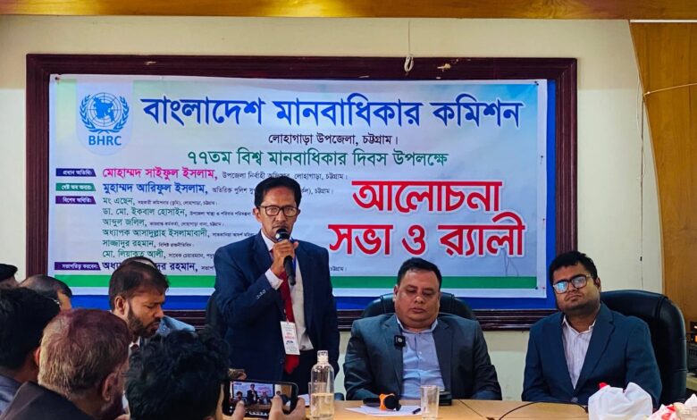 A discussion meeting and rally was held on the occasion of the 77th World Human Rights Day organized by the Bangladesh Human Rights Commission BHRC Lohagara Upazila Branch.