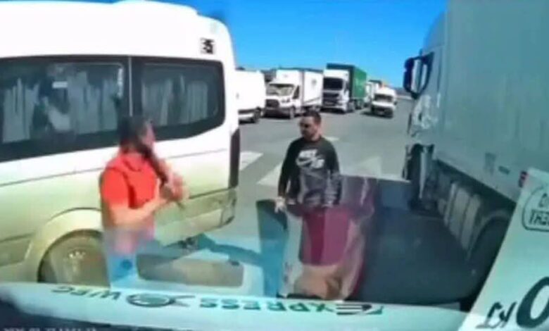الحادث المذكور بدأ الحادث بمشادة كلامية بين سائق الحافلة وسائق الشاحنة قبل أن يتطور بسرعة البرق إلى اعتداء جسدي خطير بعدما اخرج سائق الحافلة “هراوة” وضرب خصمه ضربة قوية على مستوى العنق .
